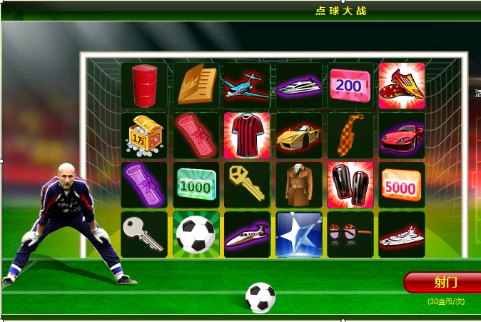 活动内容:在活动期间内,玩家参与点球大战活动,24件道具展现在球门框内,玩家仅需30金币点击射门按钮可随机获得一件道具哟,如果你射中了“足球”那你一定要攒起来,攒到10个“足球”,那点球至尊礼包就要免费为你送上啦~“足球”大奖领取次数有限喔!