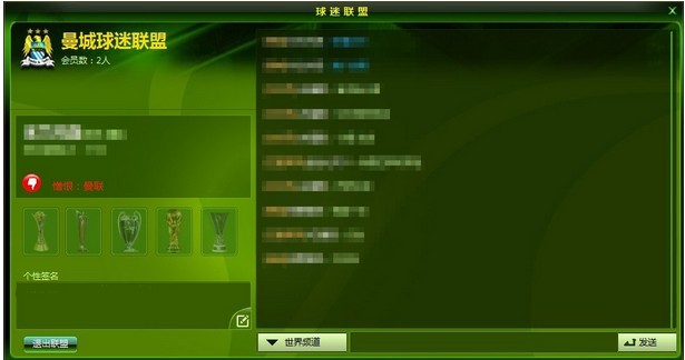 在联盟中会显示部分玩家信息,会了解到其他小伙伴儿是来自哪个区服,球队实力,游戏所获得的一些荣誉,以及展示自我的一些个人说明等等。