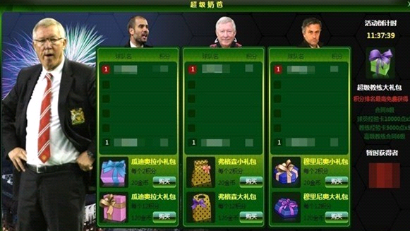 活动内容:在活动期间内,参与“超级奶爸”活动的玩家在购买三位教练的大/小礼包时不仅可随机获得诸多道具装备,购买礼包的同时还可获得积分呢~在活动截止时每位教练栏中积分榜第一者可获得超级教练大礼包哟~~里面藏着合同7级、球员经验卡10000点、教练经验卡5000点、高级教练合同6级呢~
