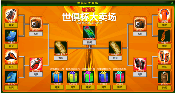 大卖场礼包小爆料:初级教练合同礼包、高级教练合同礼包、球员经验礼包、宝箱钥匙礼包、球员训练礼包,五款特色大礼包炫彩大卖场!
