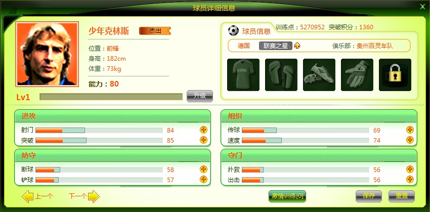 通过搜索德甲即有机会搜寻到初始能力80杰出前锋少年克林斯曼。少年克林斯曼是合成初始能力106巨星品质前锋克林斯曼的必须品喔~