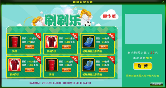2、在活动期间内,每天不限制刷新次数。每天前3次的刷新是免费的,此后每次刷新需消耗10金币。