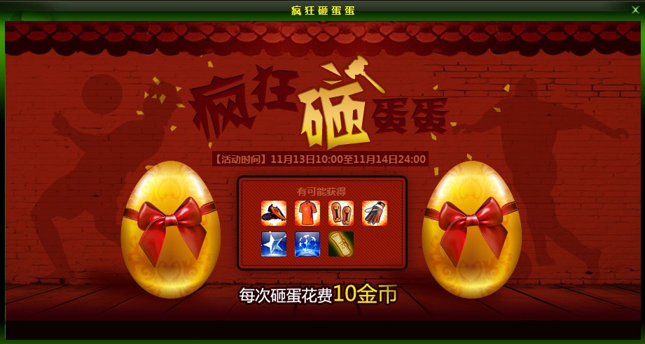 1、在活动界面中,每次砸蛋只能选择其中的一颗蛋来砸。玩家在每个活动日的首次砸蛋免费,伺候每砸一次仅需消耗10金币。