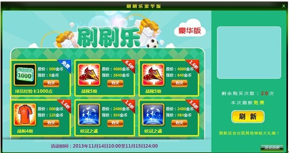 2、在活动期间内,每天不限制刷新次数。每天前3次的刷新是免费的,此后每次刷新需消耗10金币。
