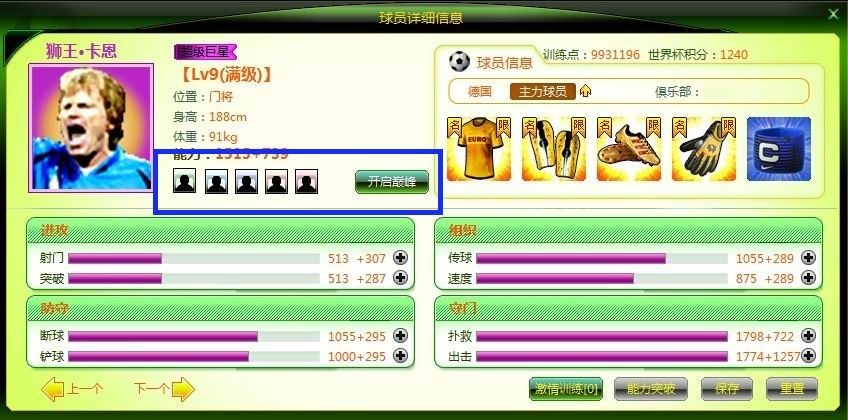 杰出球员可以使用绿色、青色、蓝色槽,可镶嵌普通、优秀、精英品质球员。