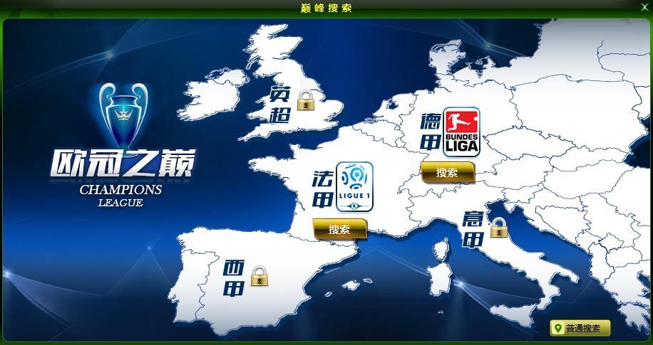 当玩家球探达到7级并且玩家游戏等级达到60级,开放巅峰搜索功能。巅峰搜索按照欧冠之巅——挑战赛的联赛顺序依次开启,玩家只能搜索到所选择的对应联赛的球员。