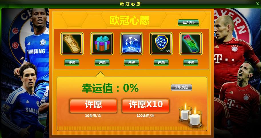 左三大奖:欧冠之魂*10,每次许愿仅需10金币。