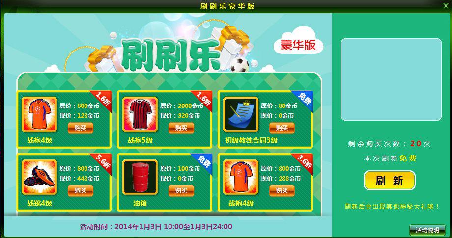 2、在活动期间内,每天不限制刷新次数。每天前3次的刷新是免费的,此后每次刷新需消耗10金币。