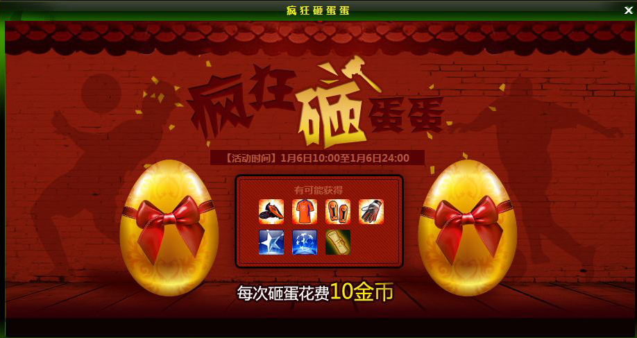 1、在活动界面中,每次砸蛋只能选择其中的一颗蛋来砸。玩家在每个活动日的首次砸蛋免费,此后每砸一次仅需消耗10金币。