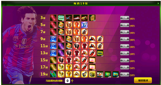 2、翻出的道具中会有积攒“足球”道具,玩家通过消耗一定量的“足球”,来兑换相应的大奖励。奖励明细如下: