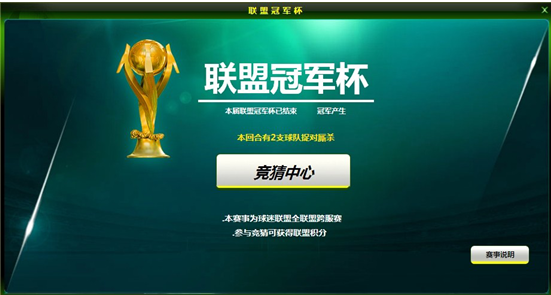 联盟冠军杯为全联盟跨服赛,在全区所有参赛球队中产生一名联盟冠军杯冠军。联盟冠军杯冠军得主获得6个联盟奖章,并且还有聊天窗口顶置的冠军得主提示信息呢。莫小觑联盟奖章的奖励,它能够给传奇球员增加初始能力哟~
