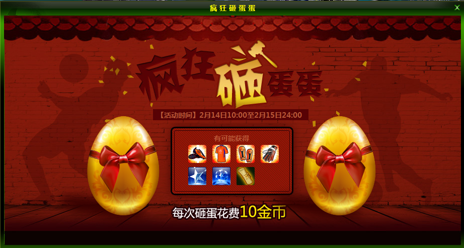 1、在活动界面中,每次砸蛋只能选择其中的一颗蛋来砸。玩家在每个活动日的首次砸蛋免费,此后每砸一次仅需消耗10金币。