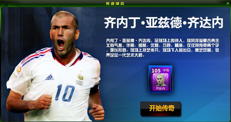 玩家游戏等级达到60级就可以看到“齐达内传奇”的标签,当玩家游戏等级达到65级开启齐达内界面,可领取绿色齐达内1名(请提前预留替补席空位)。通过完成任务提升球员品质。