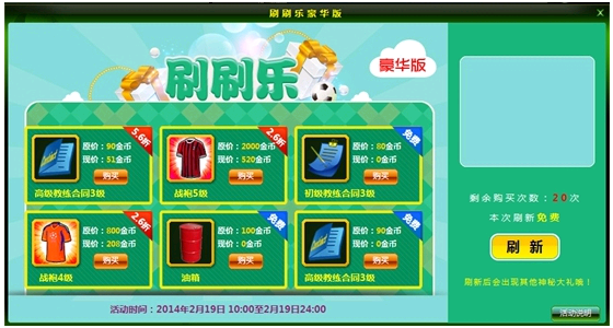 2、在活动期间内,每天不限制刷新次数。每天前3次的刷新是免费的,此后每次刷新需消耗10金币。