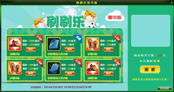 2、在活动期间内,每天不限制刷新次数。每天前3次的刷新是免费的,此后每次刷新需消耗10金币。