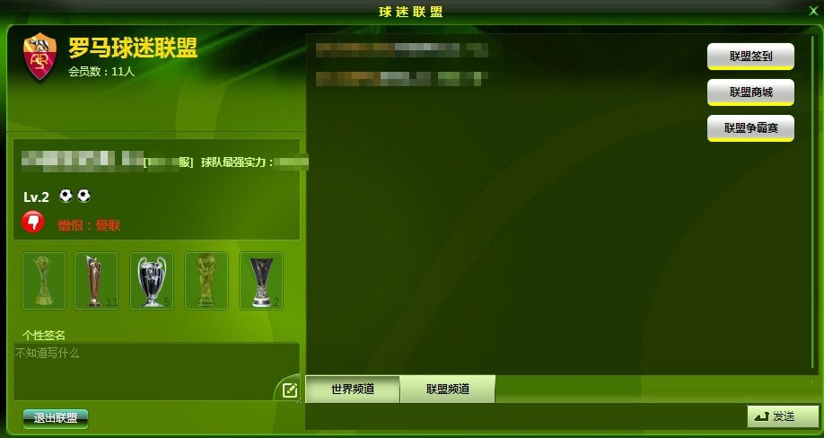 在球迷联盟聊天系统里,每日第一次上线后,会有系统提示。