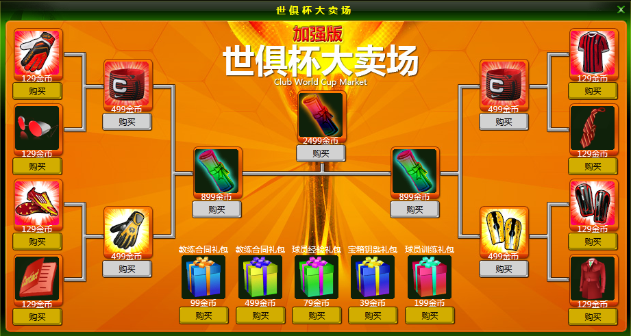 大卖场礼包小爆料:初级教练合同礼包、高级教练合同礼包、球员经验礼包、宝箱钥匙礼包、球员训练礼包,五款特色大礼包炫彩大卖场!
