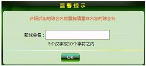 ③数据互通后,在服务器中有重名的球会名称,处理规则同重名角色。