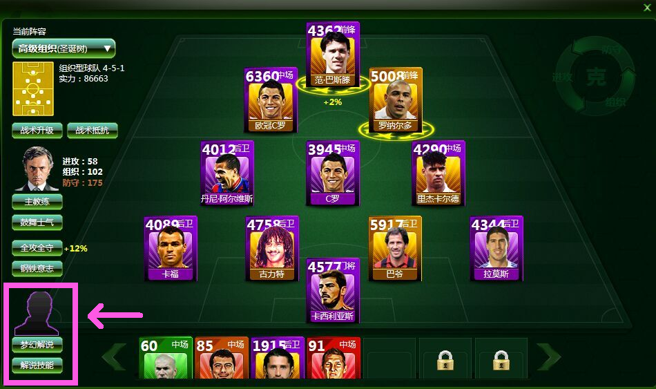 当玩家游戏等级达到65级可开启梦幻解说系统。在梦幻解说系统中,将16名解说分成5个档次,每一档次有3个解说,每个对应一类战术。究极档次下的解说,能够对应全战术。