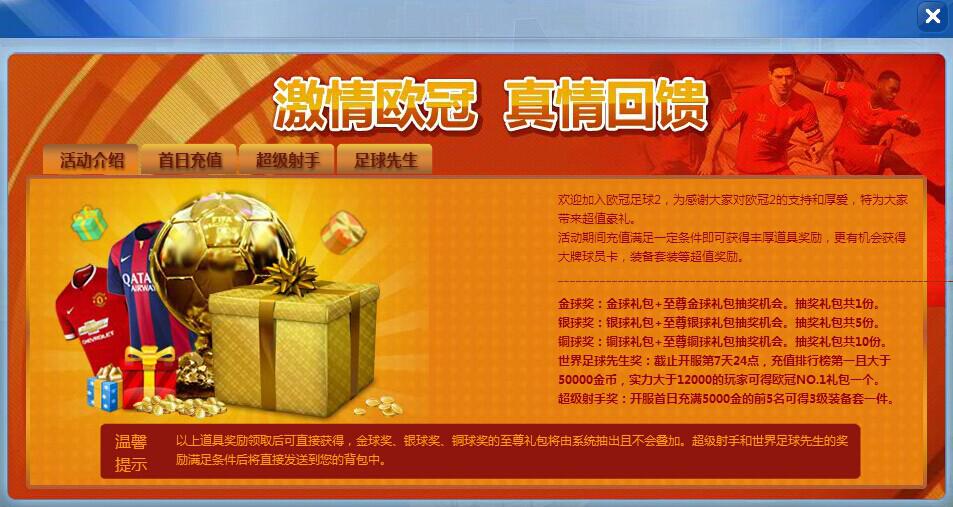 活动一、激情欧冠真情回馈——开服首日充值 豪夺金球奖