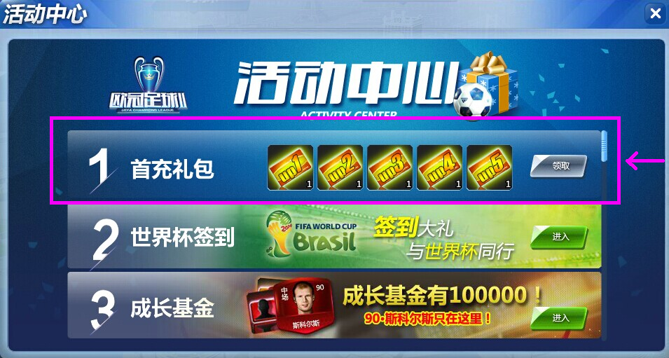 活动一、激情欧冠真情回馈——开服首日充值 豪夺金球奖