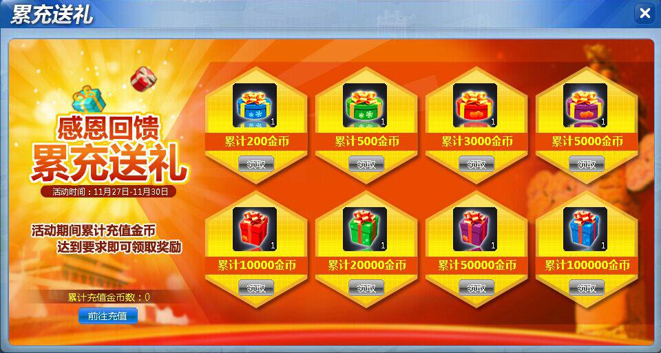 激情提示:活动期间累充达100000金币,以上所有充值奖励全部拿走!!!