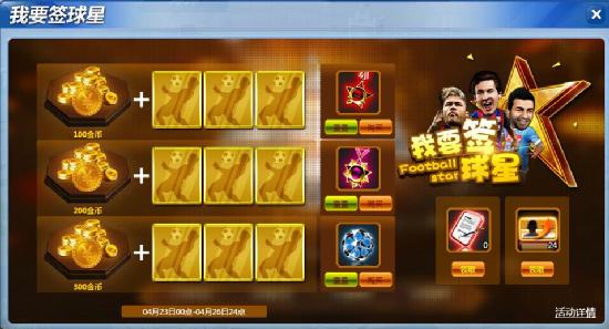 活动内容:在活动期间,玩家参与“我要签球星”活动。玩家通过翻牌获取签约道具价格并购买签约道具。“我要签球星”活动玩法简单,大球星说签就签,快快做好准备哟~