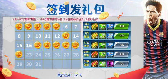 活动内容:在活动期间,玩家每天登录游戏进行签到,签到成功则随机获得绑定金币哟~达到指定签到天数可领取道具奖励!若是漏签,每补签一次花费66金币!