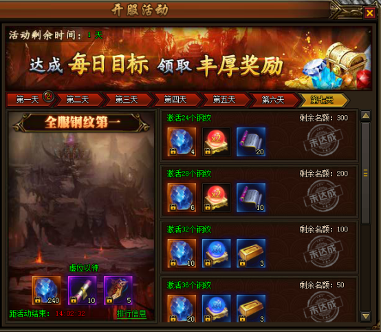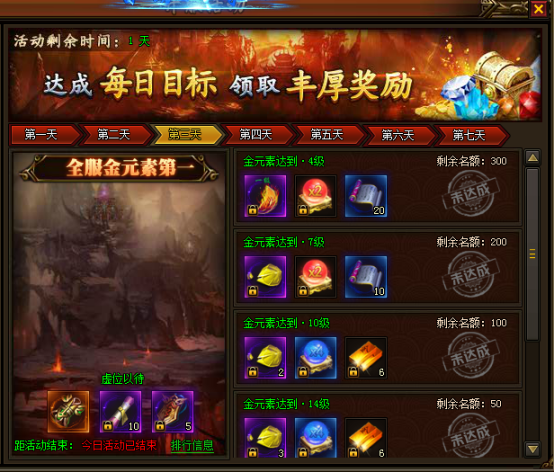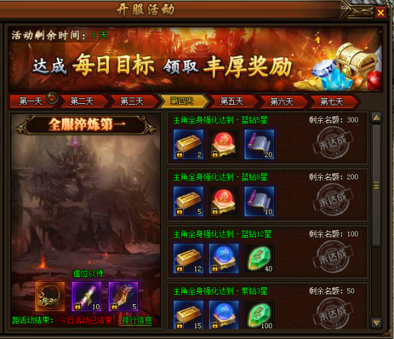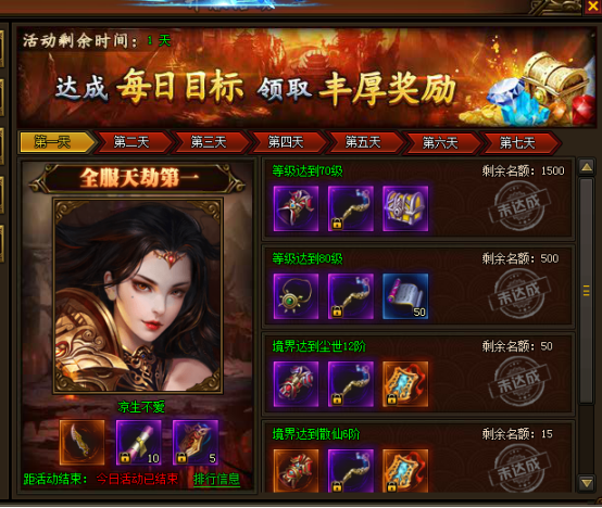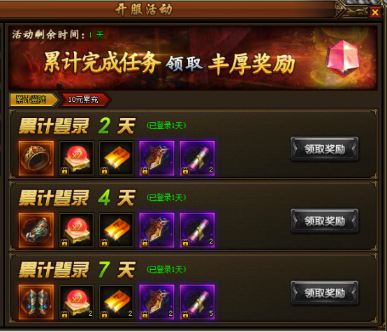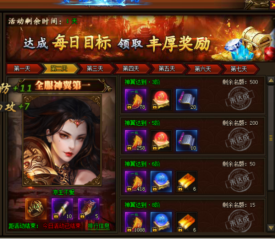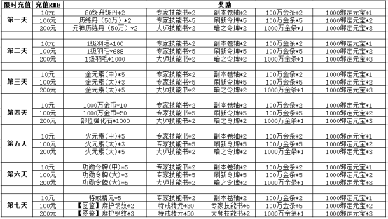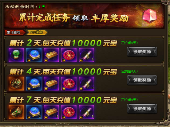 活动详情:活动期间玩家单天累计充值达到要求即可领取丰厚奖励。