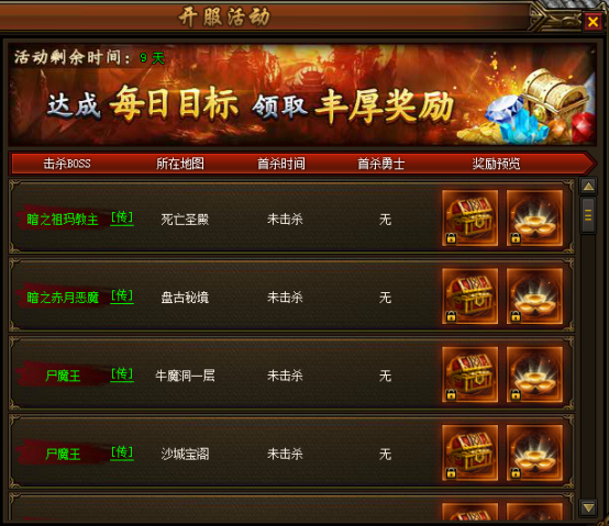 活动详情:达成boss首杀目标,领取丰厚奖励