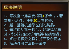 活动规则:活动期间玩家的累计充值点券达到相应的额度(不计返利点券),都可以在活动界面领取奖励!