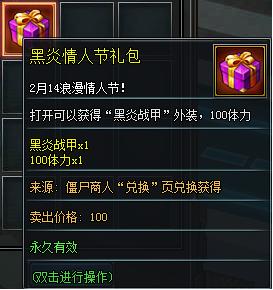 活动内容:开启重铸宝箱、核心宝箱有机率获得红玫瑰,红玫瑰可在僵尸商人处兑换“黑炎情人节礼包”或其它豪华道具;