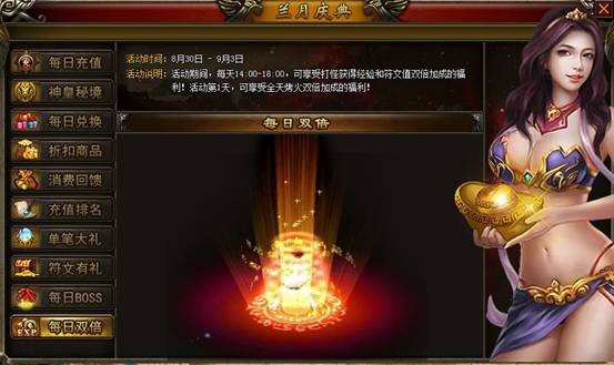 【活动内容】:活动期间,每天14:00 – 18:00,可享受打怪获得经验和符文值双倍加成的福利!活动第1天,更可享受全天烤火双倍!