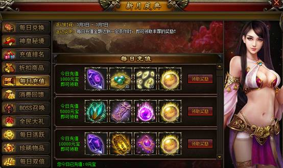 【活动说明】:每日充值金额达到一定条件时,可领取一份奖励。