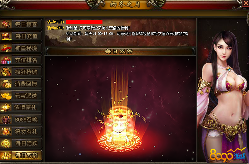 【活动内容】:活动期间,每天14:00 – 18:00,可享受打怪获得经验和符文值双倍加成的福利!活动第1天,更可享受全天烤火双倍!