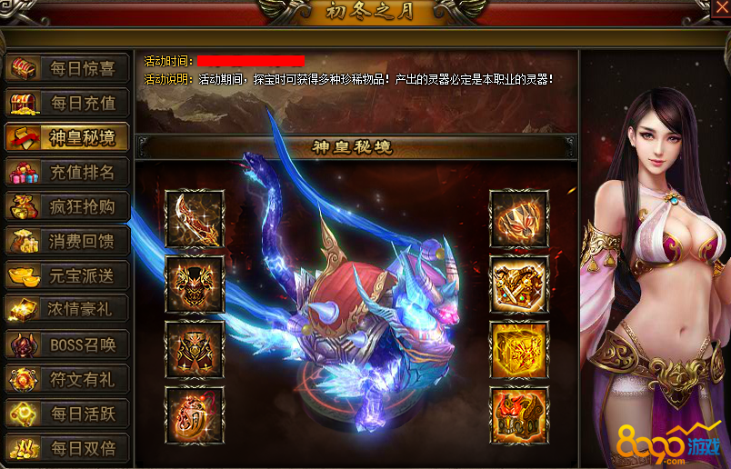 【活动说明】:活动期间,探宝时可获得多种珍稀物品!获得的灵器必定是本职业的灵器。