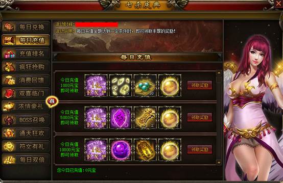 【活动说明】:每日充值金额达到一定条件时,可领取一份奖励。