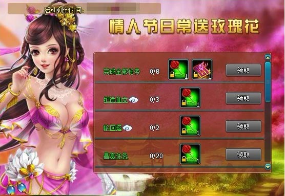 活动五、情缘登陆拿大奖 完成日常送玫瑰