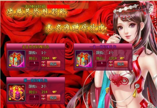 活动内容:活动期间,等级大于等于40级的仙友可在活动界面购买情人节示爱礼盒,生生世世鲜花礼盒,一生一世鲜花礼盒,爱一世鲜花礼盒大促销,限时限量抢购哦!
