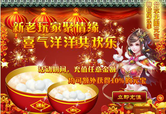 活动内容:活动期间,仙友充值任意元宝即可获得充值金额10%的返利,超值回馈返利,机会难得,不要错过哦!