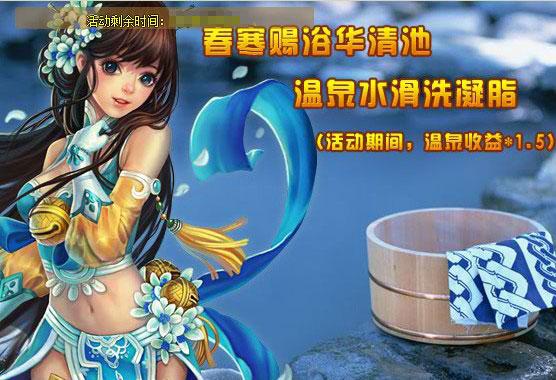 活动内容:活动期间,等级大于等于40级的仙友在每天12:00-12:30,18:00-18:30温泉时间参与即可获得1.5倍的奖励哦!