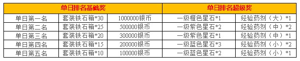 3. 每日充值活动奖励向下兼容,例如每日充值满50000金币即可领取以上所有奖励,每档奖励每日可领取一次;