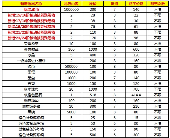 累计消费20000金币,可购买随机橙色符文石箱*1,售价99金币,单服限量99个。