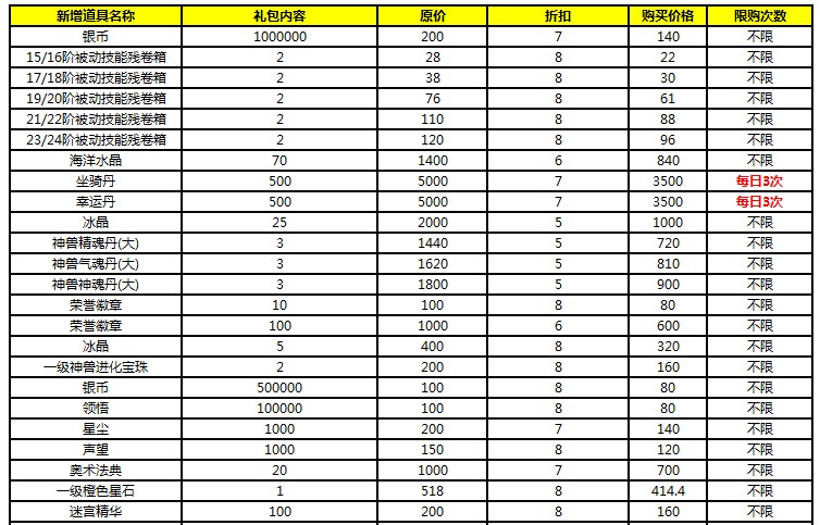 2.每次刷新后出售的道具只供购买1次,如要再次购买需待再次刷新出此道具。