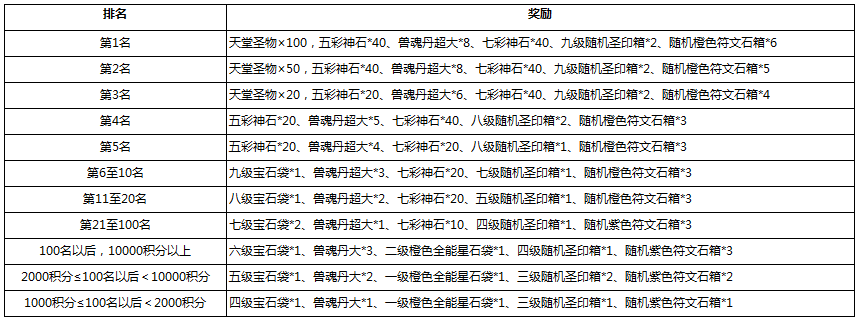 2.活动奖励只可领取一次(建议玩家获得高名次后领取对应的该档次奖励)