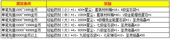 1.每单笔充值一定额度金币只可获得对应档奖励一次,无法兼得其他奖励。