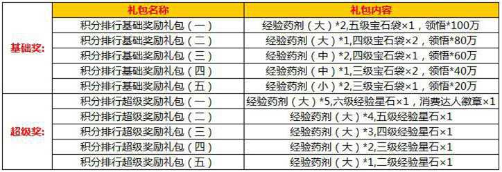 2.每日达到2000积分可上基础奖排行榜,达到5000积分可上超级奖排行榜,榜单中的奖励超值丰厚哟(具体如下)