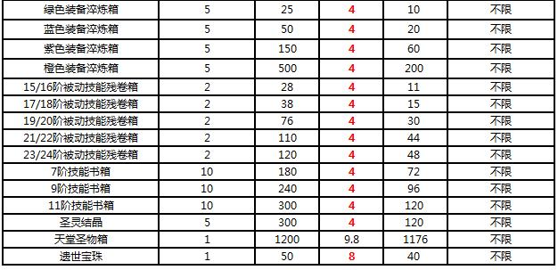 8.天堂圣物箱:使用后,随机可开出天堂圣物,集齐一定数量后,天堂圣物可用来兑换“赤焰战狮”和“米迦勒”