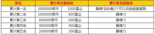 1、上期转盘调整:累计排名超级奖的第一名能获得2个器魂