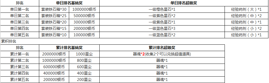 1、上期转盘调整:累计排名超级奖的第一名能获得2个器魂